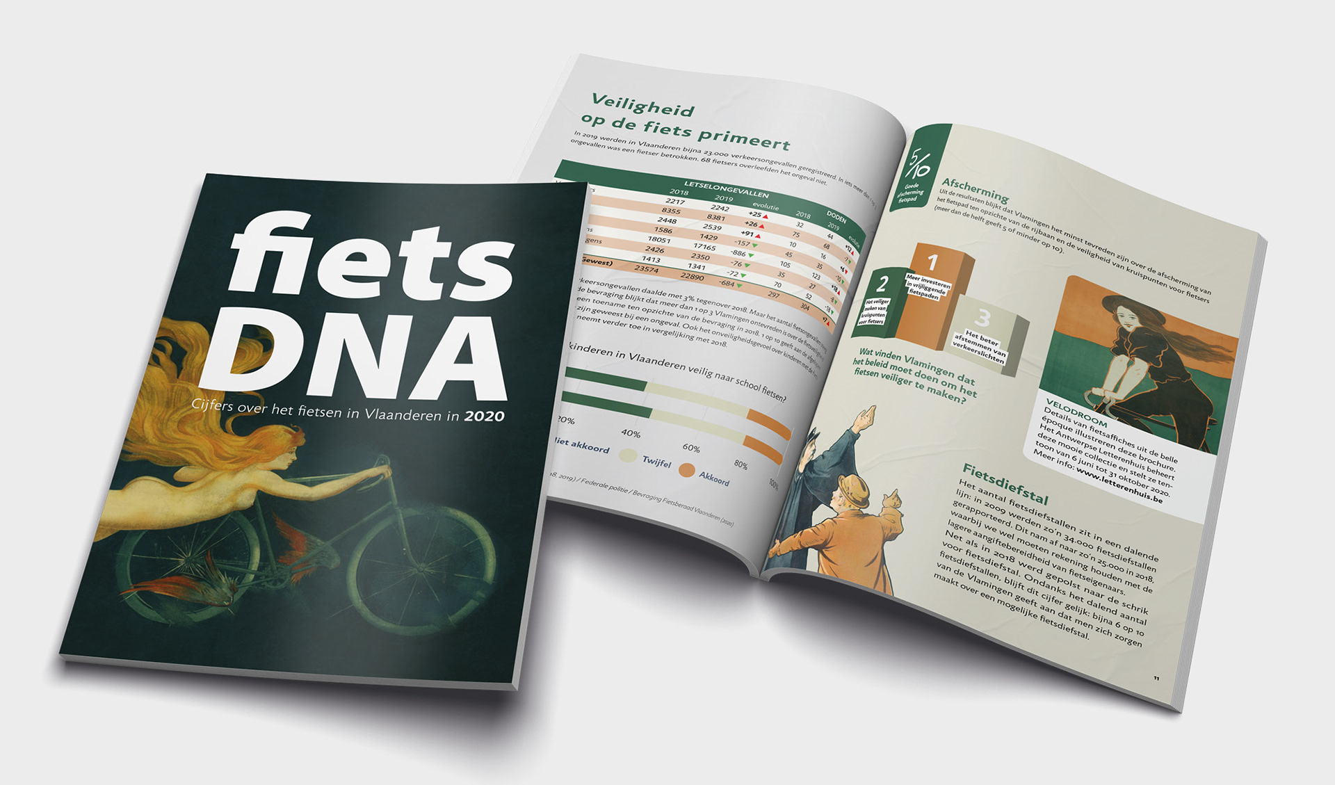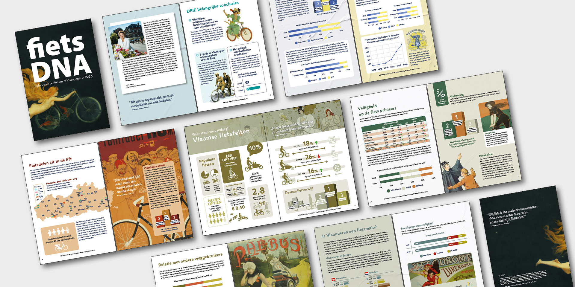 In opdracht van Fietsberaad Vlaanderen deed ik de vormgeving van het FietsDNA 2020, een tweejaarlijks onderzoek naar het fietsgebruik in Vlaanderen.