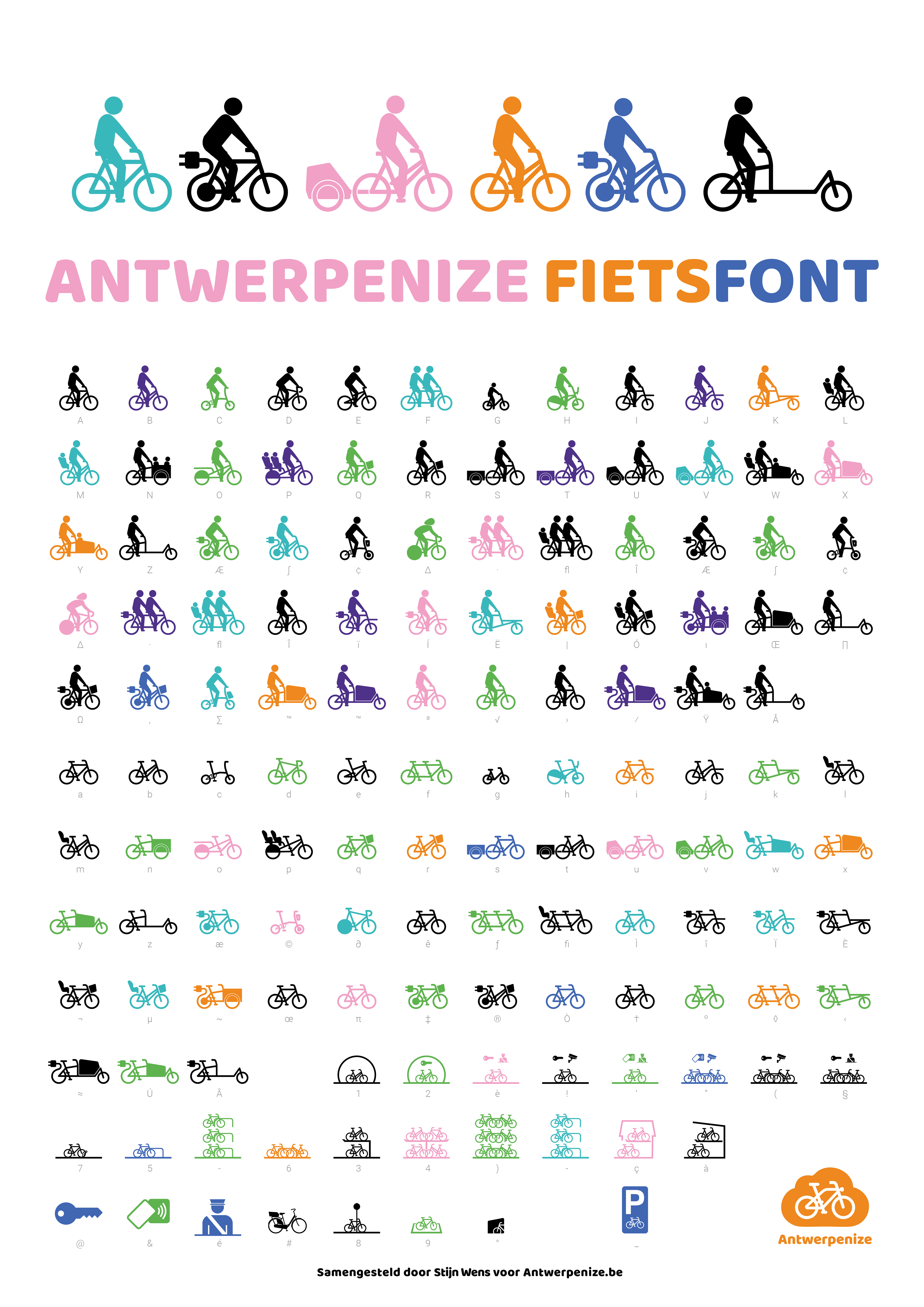 During the lockdown, I found the time to collect all the bicycle icons that I have drawn over the years. I have called this font "Antwerpenize". Because I want some attention for this small organization that is committed to quickly transforming our city into an epic cycling city. You can use this font for free and if you really like it you can buy me coffee.